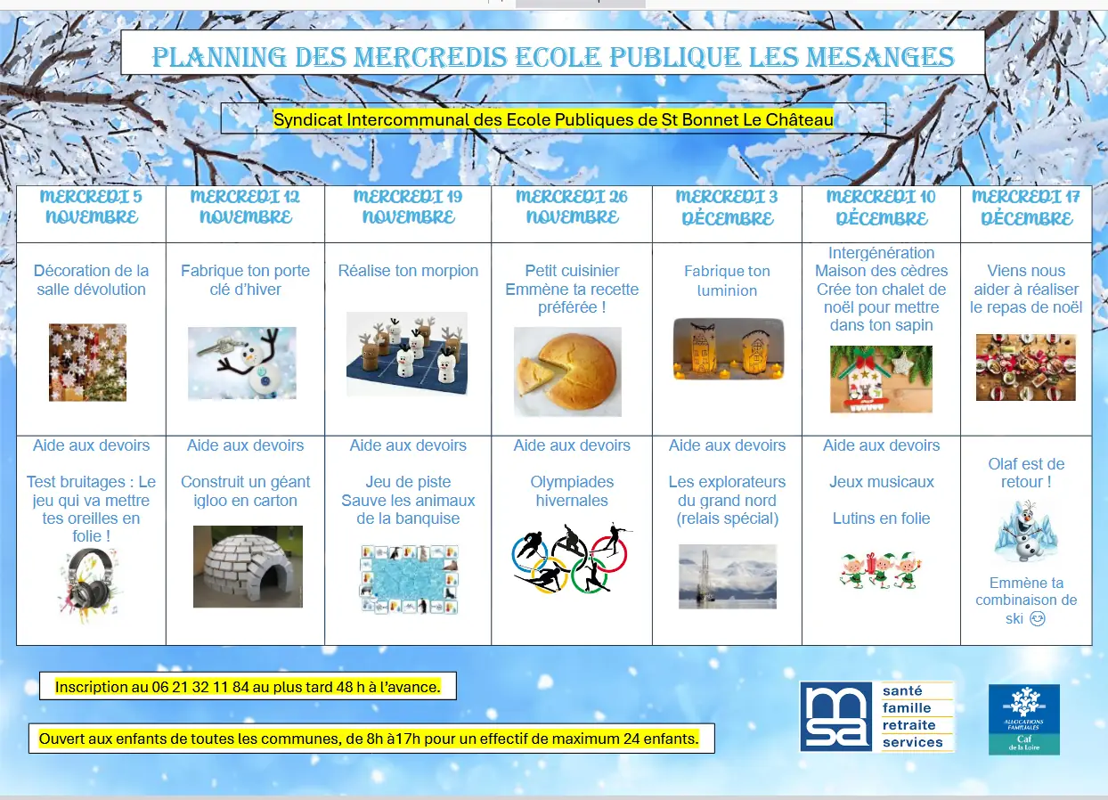 L’accueil de loisirs du mercredi est ouvert de 8h à 17h au sein de l’école élémentaire des Mésanges.